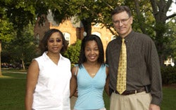 Sade Anderson (center) a May 2004 high school graduate from Monroe County who plans to attend UAB, is pictured with Cynthia Moore (far left), assistant director of the UA Rural Health Scholars Program, and Dr. John Wheat (far right), professor of community and rural medicine in the UA College of Community Health Sciences.