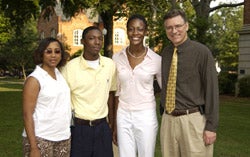 Cory Jackson (second from left), a senior at Southside High School, and Ijeoma Okeke (second from right), a senior at Selma High School, both in Dallas County, pictured with Cynthia Moore (left), assistant director of the UA Rural Health Scholars Program, and Dr. John Wheat (right), professor of community and rural medicine in the UA College of Community Health Sciences.