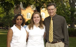 Kimberly Myers (center), a senior at Geneva City School in Coffee County, pictured with Cynthia Moore (left), assistant director of the UA Rural Health Scholars Program, and Dr. John Wheat (right), professor of community and rural medicine in the UA College of Community Health Sciences.
