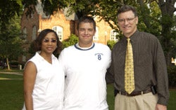 Walker County student Justin Patton (center), a senior at Oakman High School, pictured with Cynthia Moore (left), assistant director of the UA Rural Health Scholars Program, and Dr. John Wheat (right), professor of community and rural medicine in the UA College of Community Health Sciences.