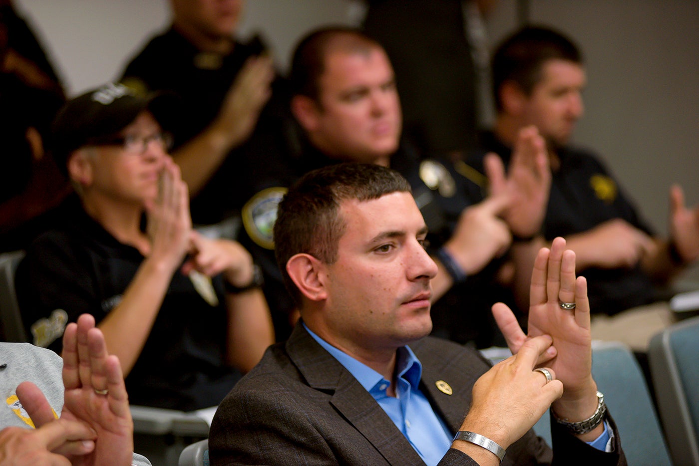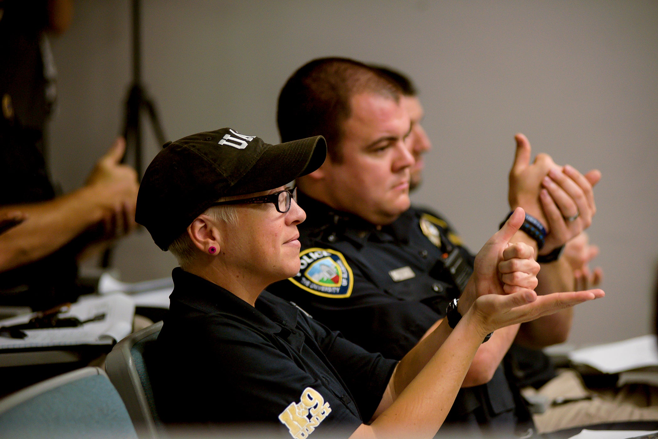 While officers provided anecdotes about their experiences, Griffin and Powell, who organized and held the workshop for interacting with members of the Deaf community, were able to provide context to some of the misunderstandings during those interactions, an overview of civil rights as they relate to people who are deaf or hard of hearing, and teach the officers 10 basic signs that could be applied during future interactions.