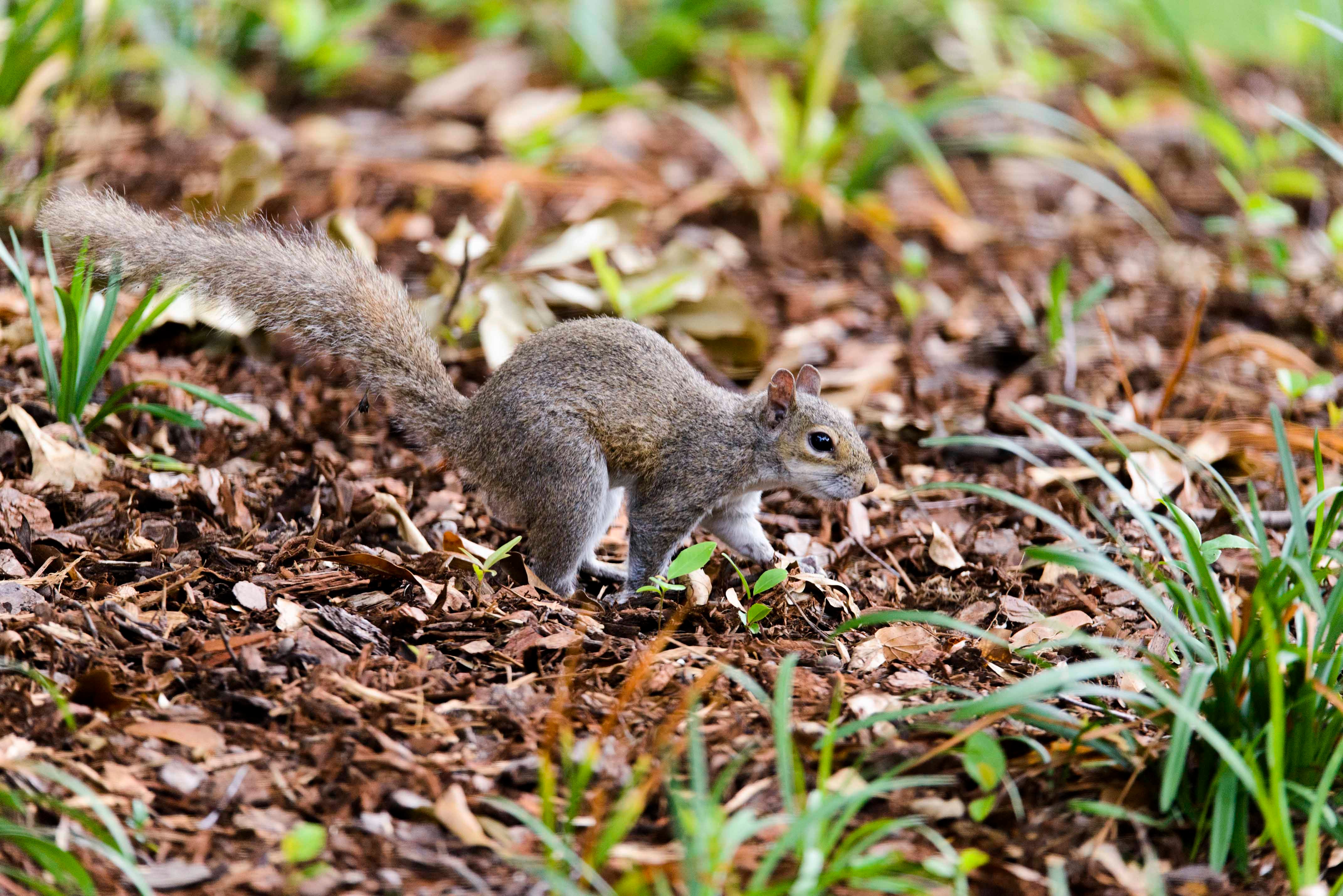 Squirrels come down from the trees in the early morning and early evening hours to feed, mainly on acorns, bark, nuts, berries and seeds. Much like a UA human with research notes, squirrels are “scatter-hoarders.” They spread caches of acorns everywhere. If forgotten, the acorns will sprout into new trees, completely unlike the forgotten pile of notes, which will not sprout into completed research papers.
