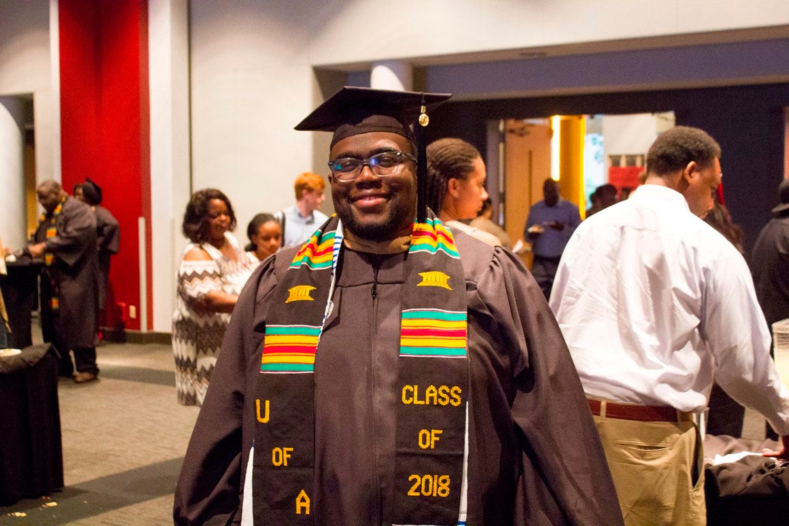 Each semester, The University of Alabama holds Nyansapo, which is a kente robing ceremony for African-American students.